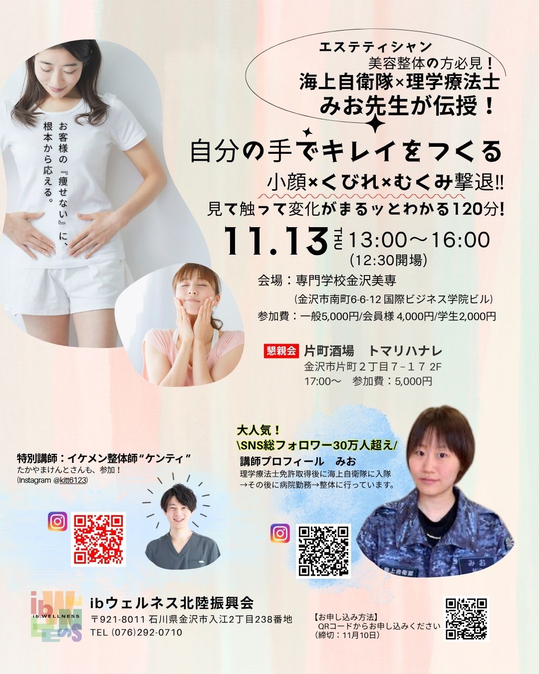 2025/11/13(木)自分の手でキレイをつくる小顔×くびれ×むくみ撃退‼【ibウェルネス北陸振興会(石川エステティック協同組合)主催】