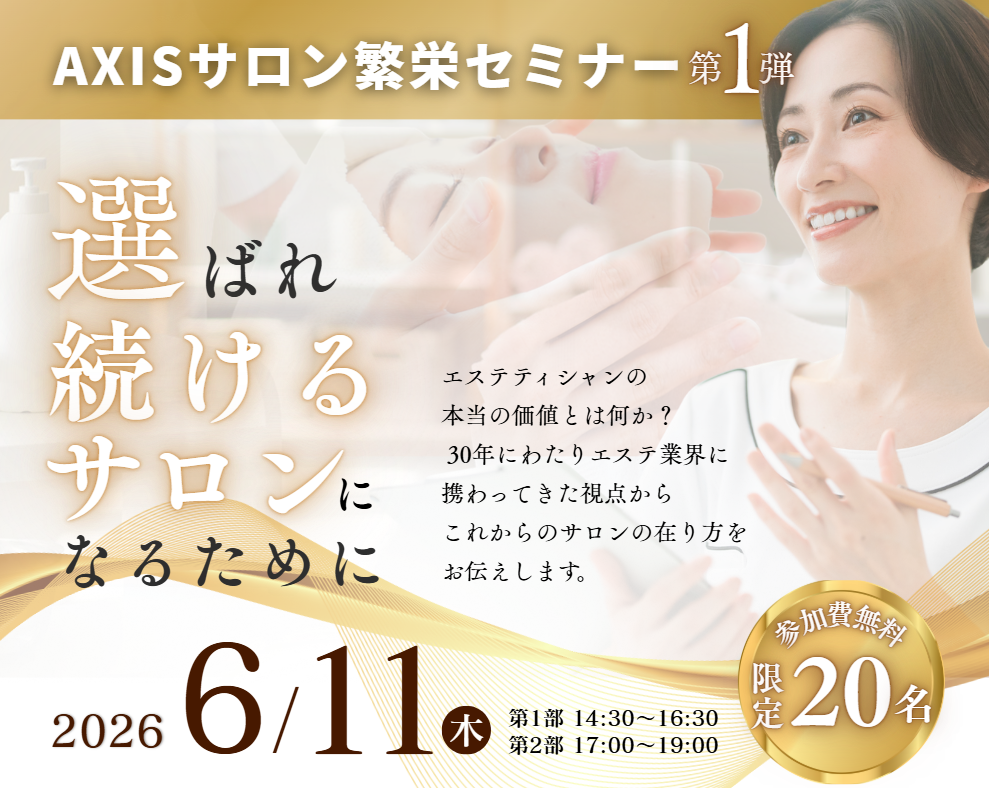 フェイスリフトアップ、顔だけで止まっていませんか?1枚皮の理論を売上に変える『上がるヘアケア』アルベリーモオンラインセミナー いつも弊社をご愛顧いただき、ありがとうございます。 4月22日(水)オンラインにて、『上がるヘ […]
