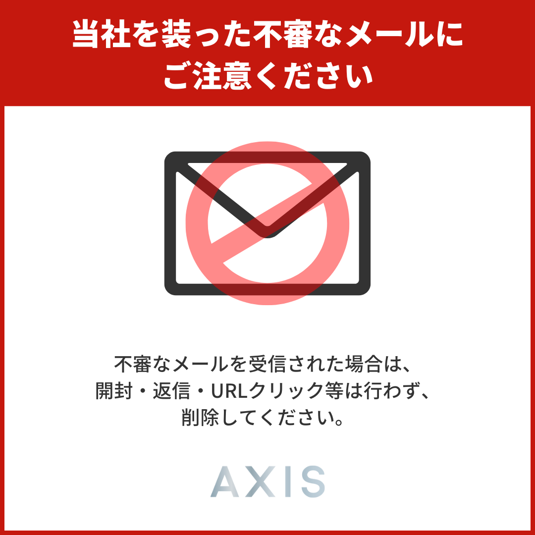 ●当社から、個別に金銭や個人情報を求めるメールをお送りすることはございません。