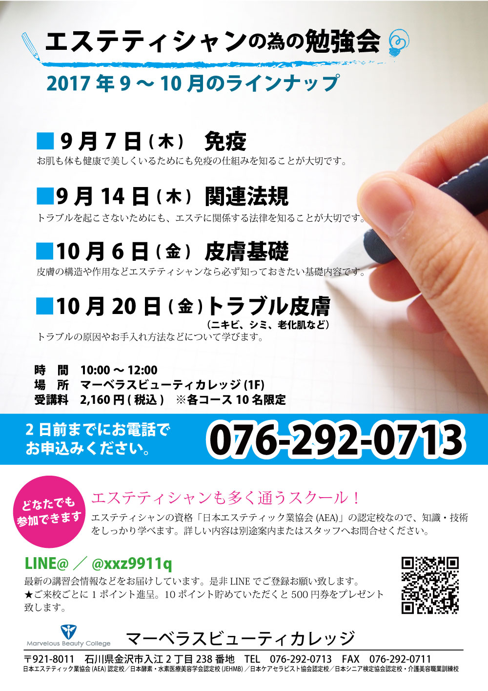 エステティシャンになりたての方、またエステに興味がある方、プロの方もおさらいとして基本を学べるカリキュラムとなっております。
