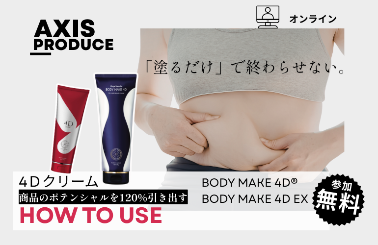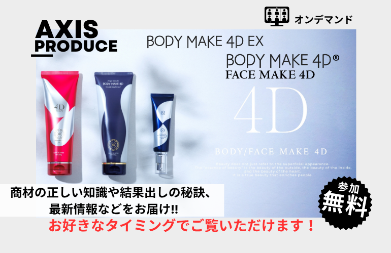 結果を重視されるサロン様にお選びいただいている業務用マッサージクリーム「4D METRICS PRO」の魅力と、AXISオリジナル技術「4D Method」をオンラインセミナーにて開催しています。